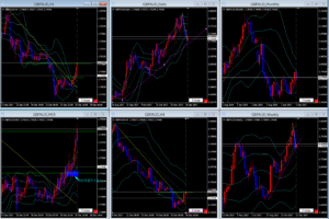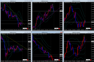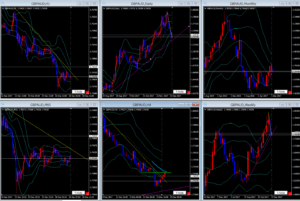 例えば、下図のGBP/AUDですが、(ミドルを基準にすると)月足は上に、週足は上に、そして日足は下に行っています。