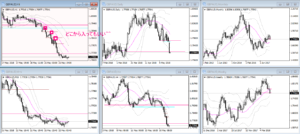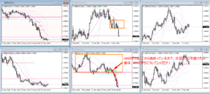 特に波の勢いが強い場合は、4Hが波を作って戻すのは期待できないので、4Hのローソク足が変わるタイミングを確認しながら、1Hの波を見て入った方がいいです。