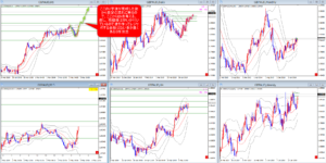 この後に、レジサポを意識しながらENですが、(指標などで)V字完成の勢いが強い場合は、波でレジサポする余裕はないので、それを待っていたら、ガンガン上に行ってしまいます。
