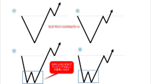 もう一つは、ブレークラインの手前から反転して、上に行く②のパターン。