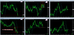 この通貨ペアー、月足&週足の然るべきところで、日足がM字(ダブルトップ)を作ろうとしていたので、日足下段のミドルに支えられたらダブルトップのネックラインまで落ちるだろうと推測していました。