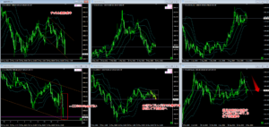 1時間足はチャネル波なので、チャネル上限に引き付けてから、15分足の上髭を確認してから、トレードポイント発生になります。