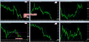 トレードポイントは4時間足以上が下降トレンドなので、1時間で、上下段を分かつミドル付近でレジサポを確認してのポイントになります。