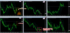 週足&日足が下降トレンドですが、4時間足が上・下段の下段から第六を作り、ミドル付近まで一時的に上昇する部分。