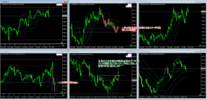 トレードの注目ポイントとしては、日足の大きな流れの転換点付近で、4時間足のボリンジャーバンドが閉じるようなイメージのところは、そこに大きな抵抗があることを暗示しているので、EXポイントだけでなく、失望売りも起こりうるポイントだということです。