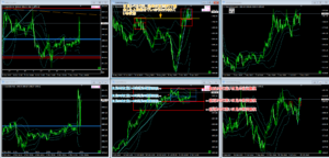 もっと言うと、デイトレレベルでは波は日足の重要抵抗間の中の4時間足抵抗間を動いていますね。