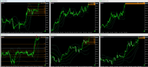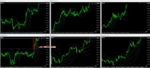 史上最高値更新という事で、左側にデータが存在しないため、ENとEXは下図のように、普段滅多に使わないフィボナッチを使いました(123.6~161.8)。