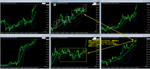領域分析をすると、波の動く範囲が「見える化」するので、領域の下限で波の止まりが確認できるなら「えいやっ!」で下から入っても良いし、私のように、15分足のバンドが開くところから入っても良いです。