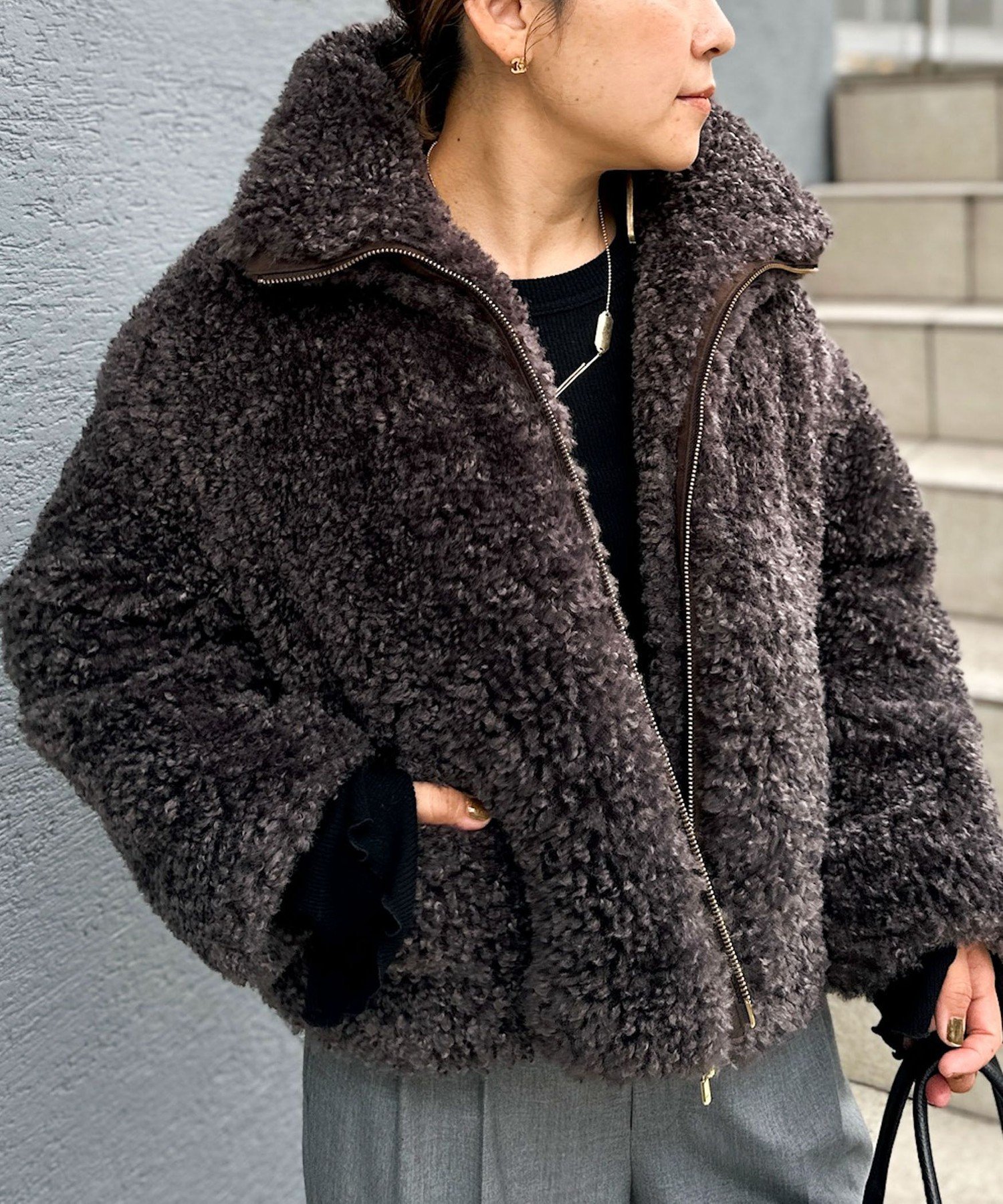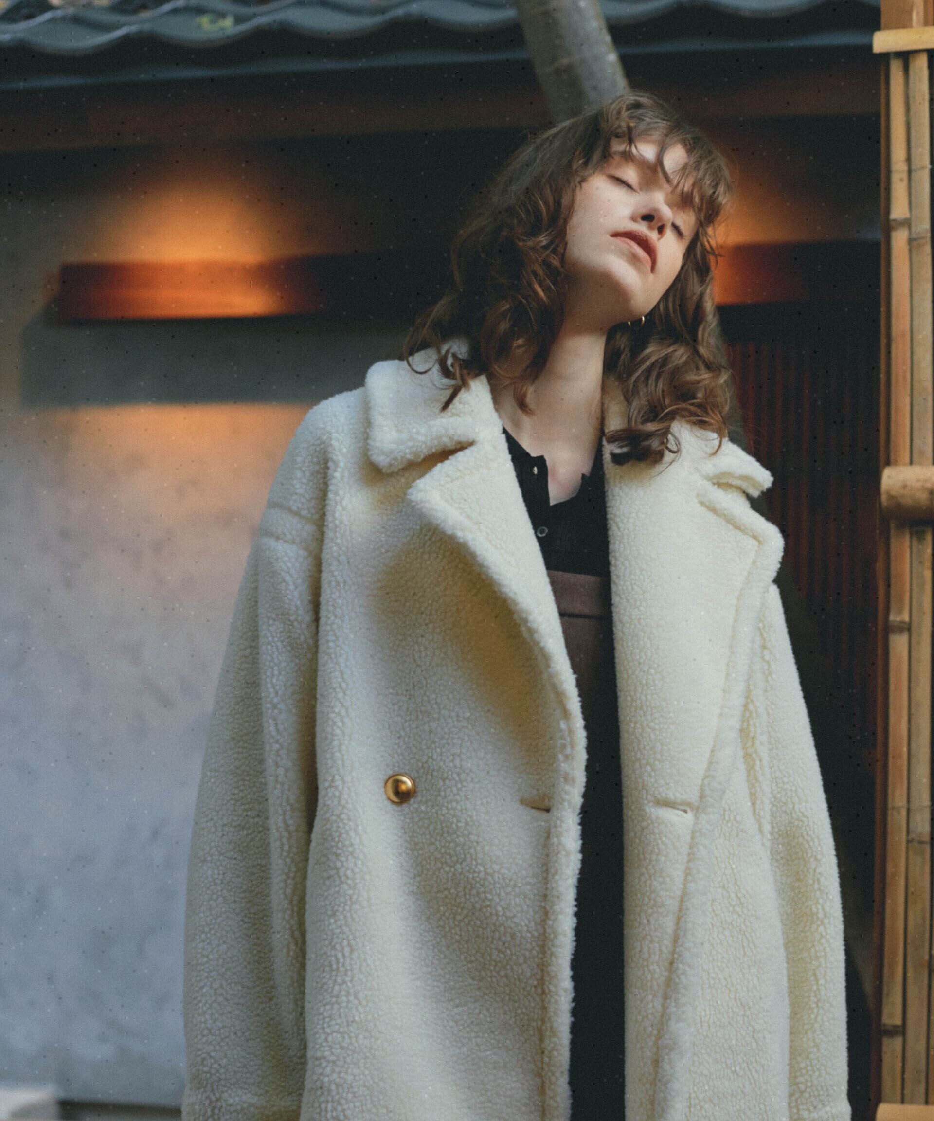 フレッシュさんの得意なPコートもシャギーやボアなど素材が変わると大人の余裕を感じさせてくれます。