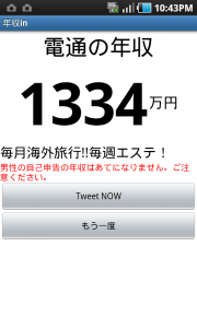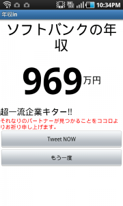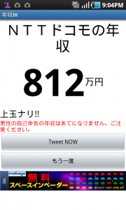 このAndoroidアプリ「年収in -年収検索-」を使えば、上場企業の年収が一発でわかってしまう。会社名を入力するだけで、次から次へと金額が表示される。このアプリは完全オフラインなので、地下の居酒屋なんかでも使用できる。せっかくなので業種を問わず、片っ端から検索してみた。