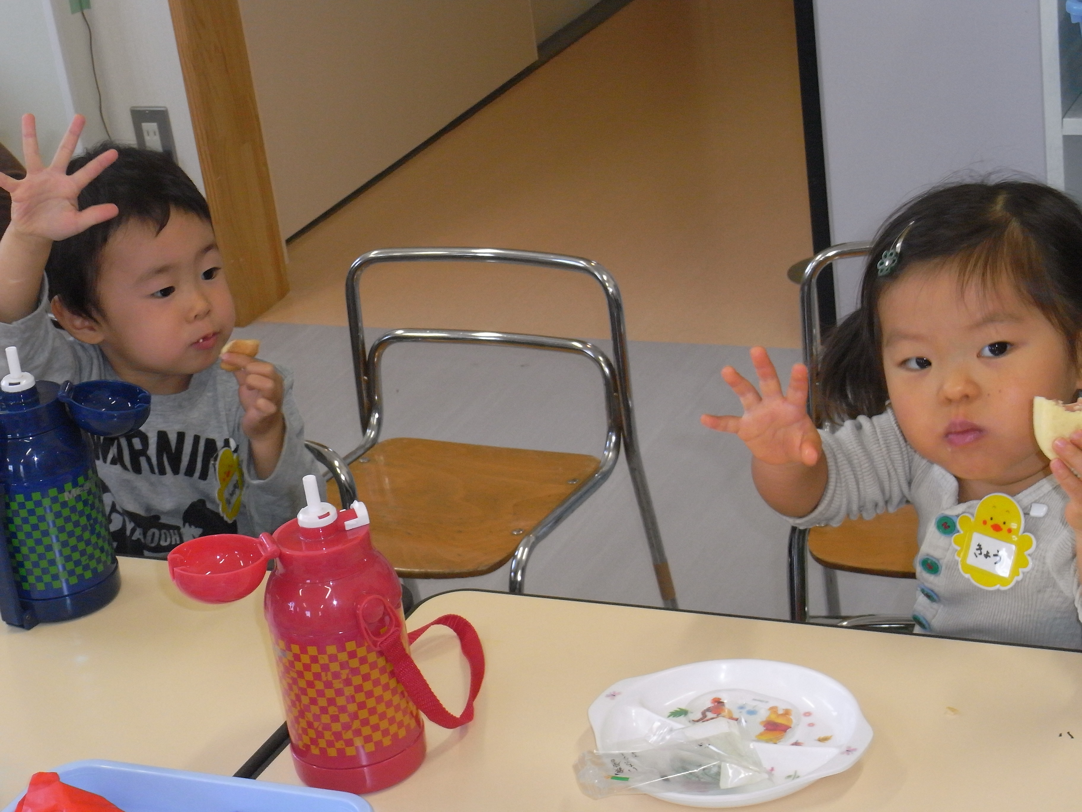仲良しきょうちゃんとお隣り同士で美味しいおやつタイム。