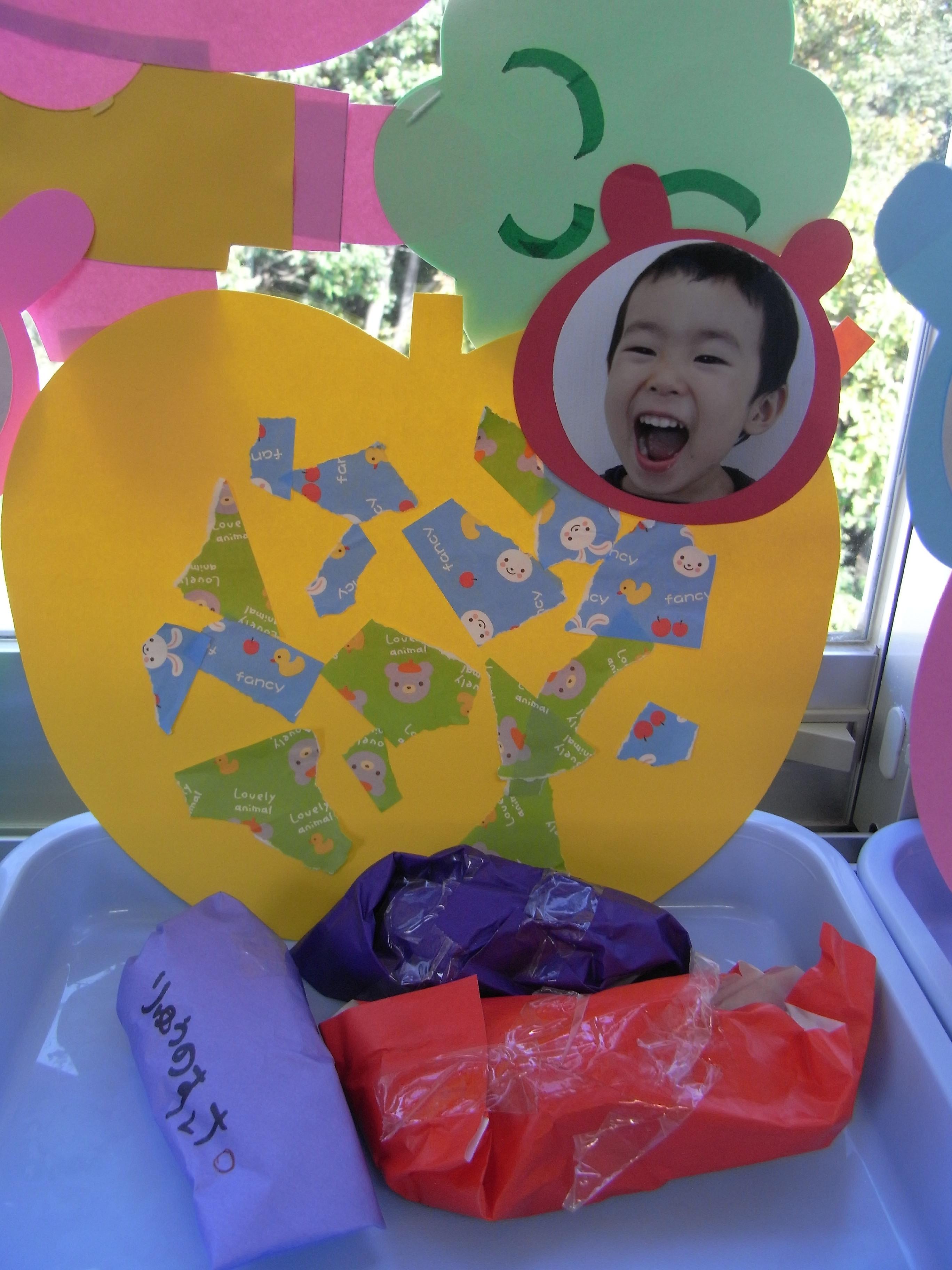 やきいもとりんごの色画用紙にお顔をつけて完成。