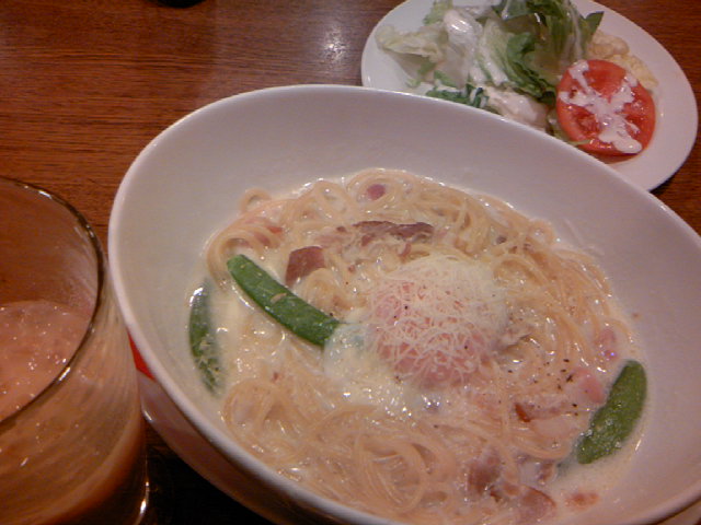 で、カルボナーラ+ミニサラダ+ドリンクバー。