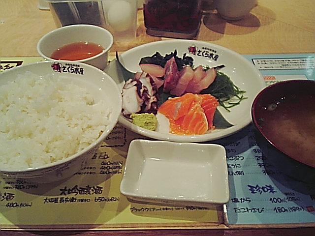 高そうなレストランばかり(笑)。ちょうどさくら水産を見つけたので、刺身定食。