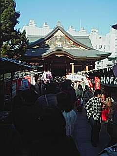 何故か屋台が出てました。射的もあるし、チンドン屋も居たし。 で、よく見たら梅祭りのノボリが立ててありました。全然咲いてないんですけどね。
