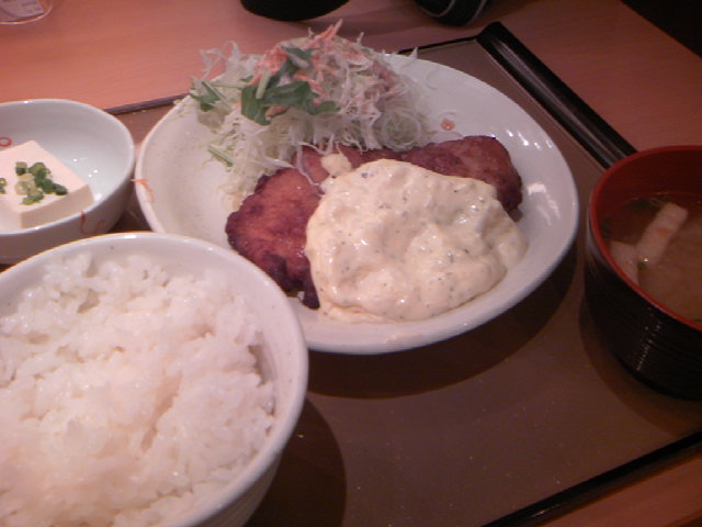 新幹線に乗る前にチキン南蛮定食。