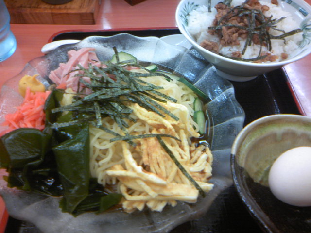 で、始まる前に、温玉チキン丼+黒酢しょうゆ冷やし麺のセット。
