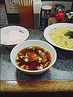 交換の待ち時間に昼食で、大ざるラーメン+サービスライス。。