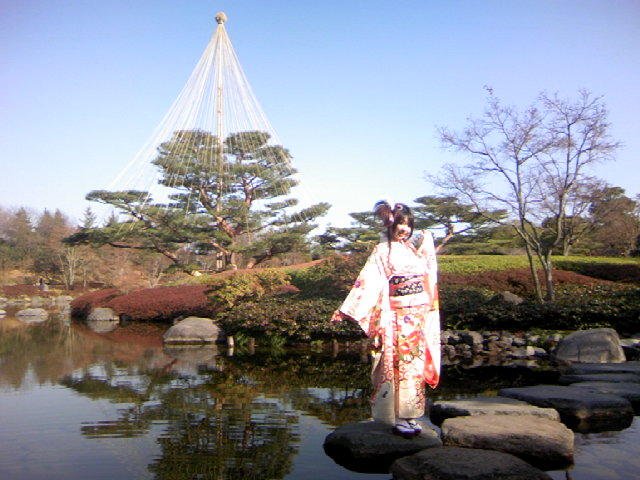 途中で日本庭園内の茶屋にて、恒例(?)のお茶と和菓子を頂きました。