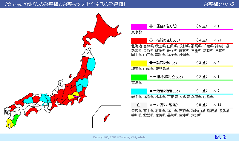 最北は、北海道の長万部(泊まり)と登別(日帰り)。