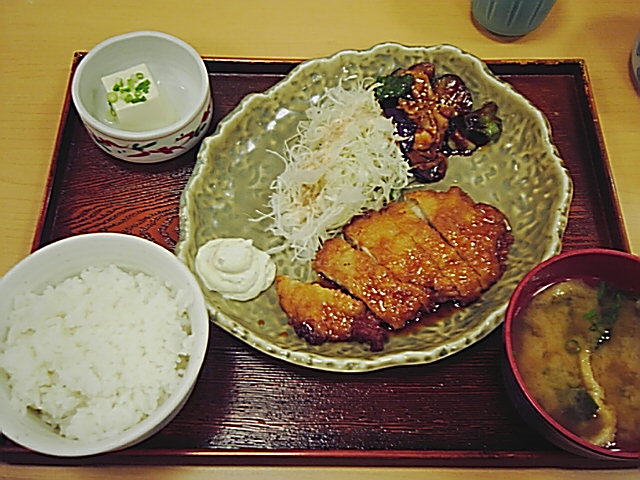 で、チキン南蛮と茄子味噌定食。