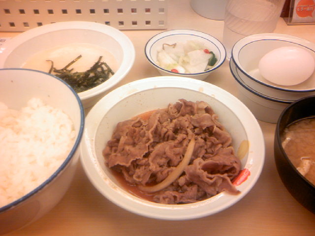 で、試験会場向かいにて、月見とろろ牛皿定食。