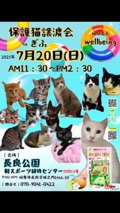 7月20日は保護猫譲渡会だよ、長良公園!!