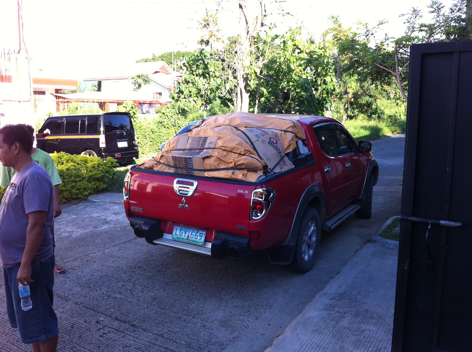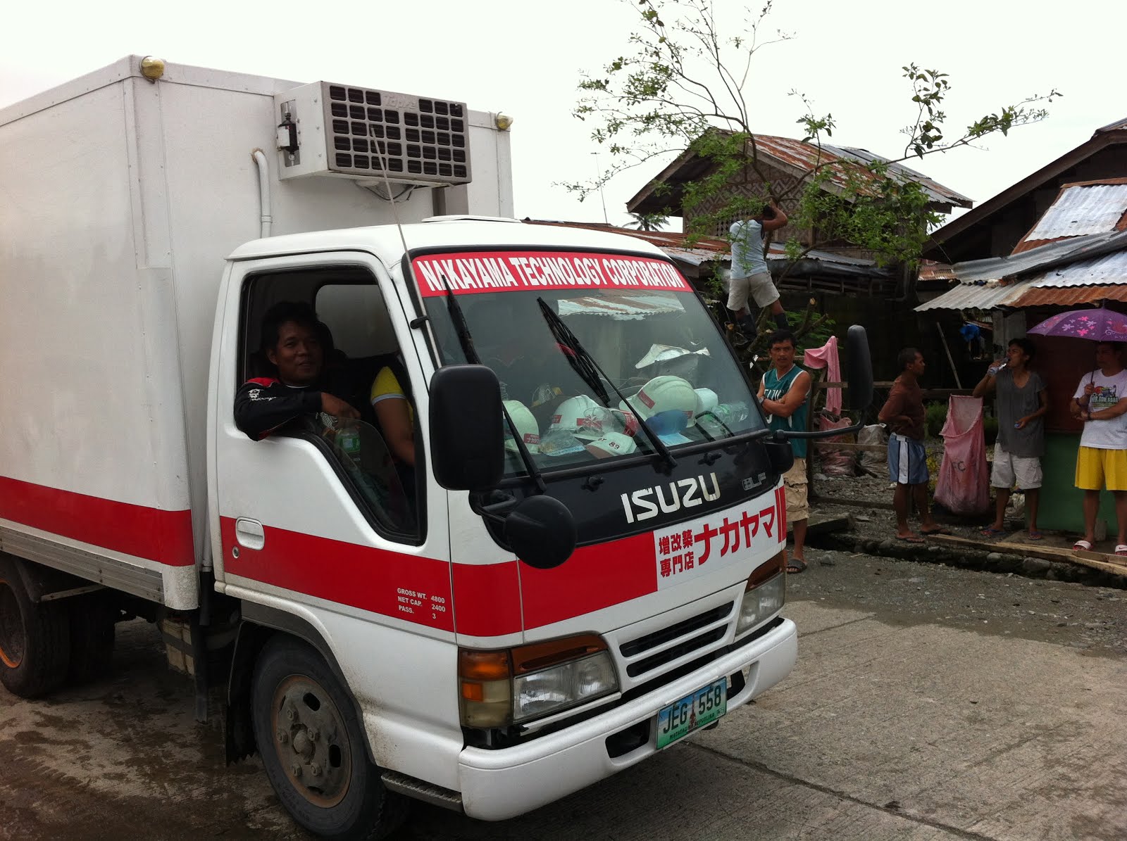 今回の支援部隊は米2トン、缶詰、薬、その他ナカヤマさんならではの屋根などに利用できる、建築資材などの直接支援です。ナカヤマさんはディゴス市では1,200人もの社員が工場で勤務されているそうで、ダバオのフィリピン人でもほとんど知っています。