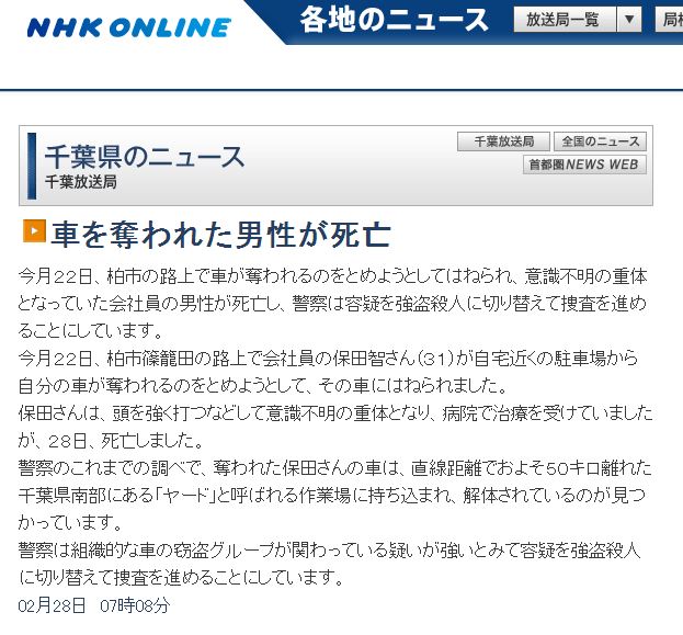 2月22日に発生した千葉県柏市のインプレッサ盗難事件の被害者の方が亡くなってしまいました。