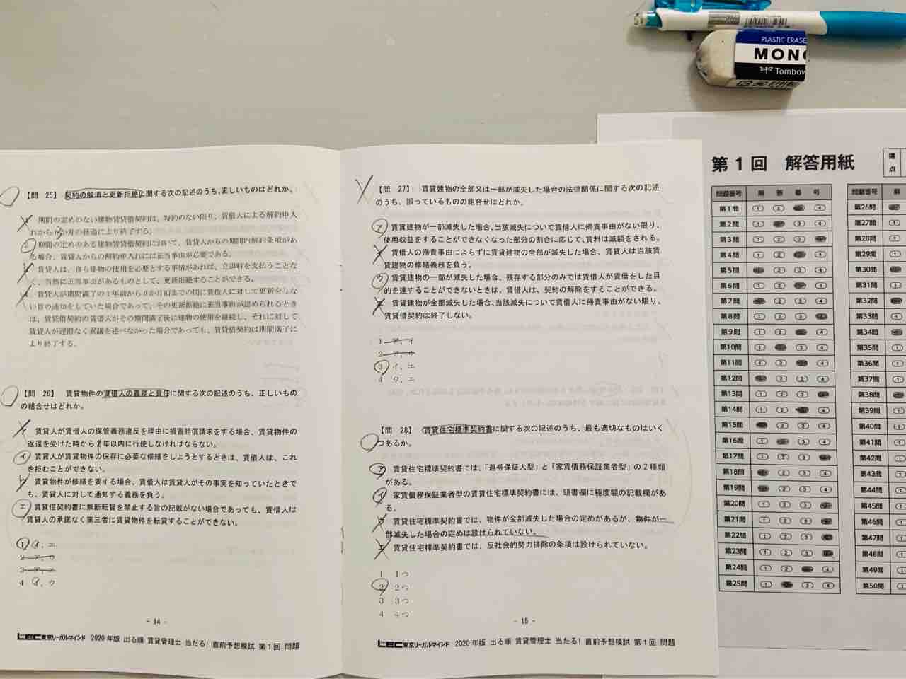 また、直前模擬試験(2回分)を終えて、両方ともに40点/50点満点を超えたので、少しホッ
