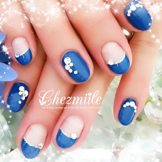 ブルーネイル 本日はお客様ご来店☆ブルーのワンカラーとフレンチのデザイン。クリスタルがとても映えて、シンプルながら気品あるネイルになりました(*^^*) ご来店ありがとうございました♡ via Rilly's Room Your own website, Ameba Ownd