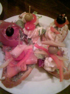 あと、このケーキみたいなのはフランスパンにいろいろのっけてある、ビンチョスっていうの。