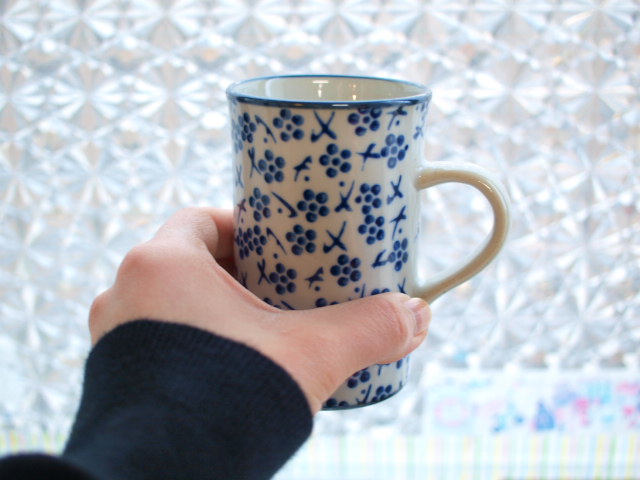 小さめの柄のマグカップです。これぐらいのサイズが丁度良いんですよね。コーヒーや紅茶に良く合いそうです。