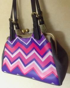 はい、紫~ピンク系のジグザグストライプ柄のラミネートです。