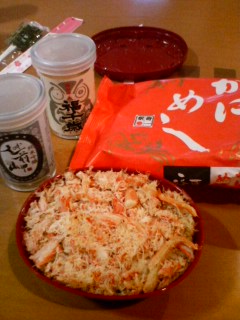 飲みすぎのため、かにめしは家についてから食べる。
