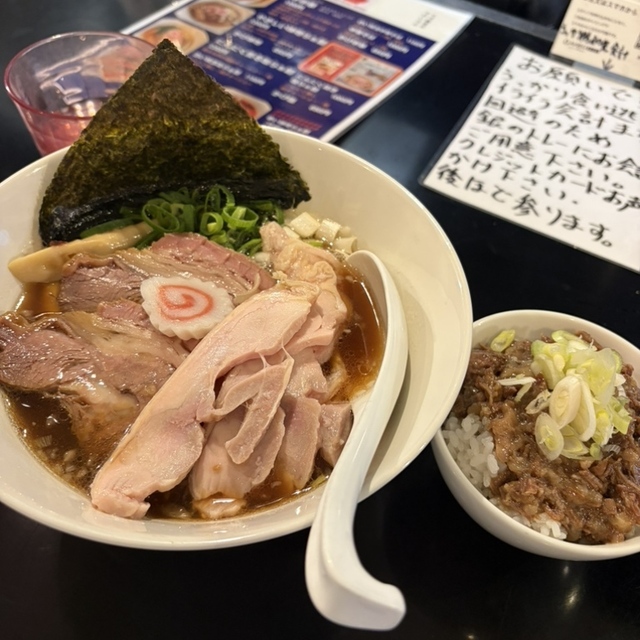 トッピングはネギ、タマネギ、牛しぐれ、メンマ、刻みチャーギュウ、玉子🥚