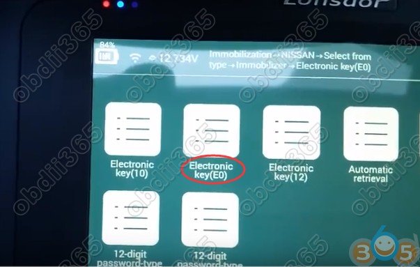 Immobilizer-> Nissan->タイプ - > Immobilizer-> Electronic Key(E0) - > Addキーを選択します