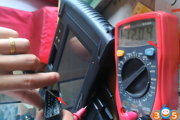 とき Lonsdor K518ise は、 あなたがメッセージ「Cuommunication障害、コード:3A1」エラー与え、あなたがメインケーブル井戸を接続し、正しいシステムを選択しているが、あなたは、バッテリ電源はデジタル用いて低かそうでないかどうかを確認するために、デバイスの電圧を確認することができます マルチメータを。