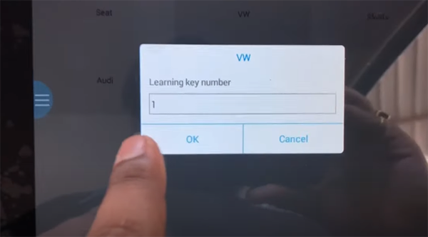 注意:車がフォルクスワーゲンティグアンの場合、[キャンセル]ボタンを押してキーのコピー機能を変更してください。 他の車はこの通知を無視できます。