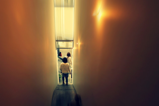 このカフェの建築はすごく面白くて、狭い空間をいかに有効に、ユニークに使うかという工夫がされているかんじ。