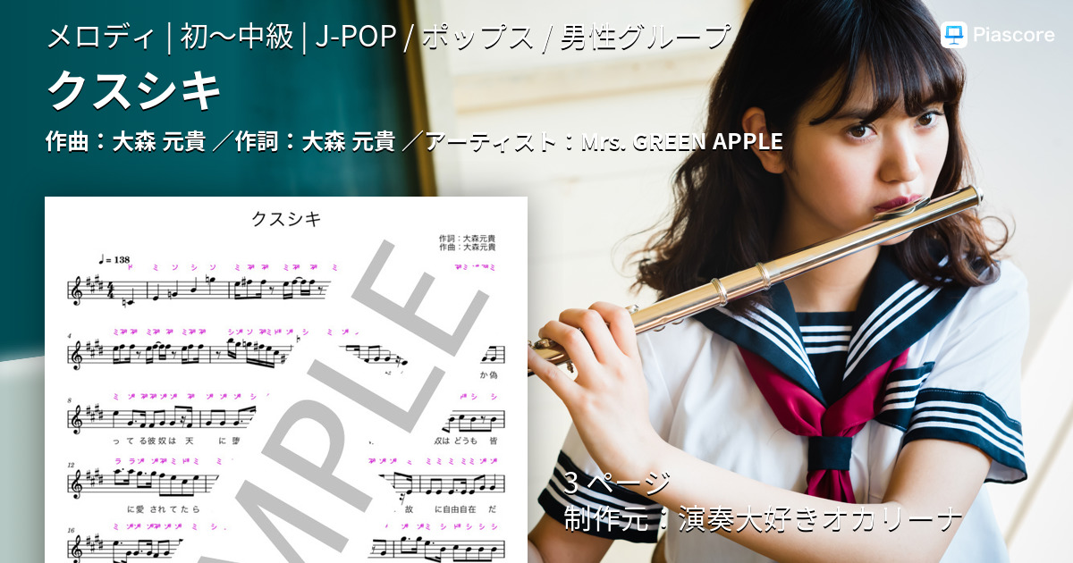 楽譜 クスシキ Mrs. GREEN APPLE 『薬屋のひとりごと』第2シーズンOP曲
