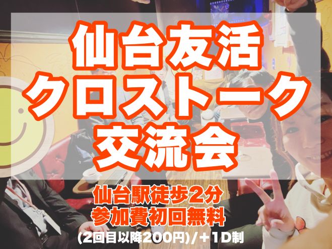 仙台駅西口で土曜の朝に友活⭐︎気軽に話せるカフェ交流会(仙台友活クロストーク) 2023年9月30日(宮城県) - こくちーずプロ仙台駅西口で土曜の朝に友活⭐︎気軽に話せるカフェ交流会(仙台友活クロストーク) 2023年9月30日(宮城県): 参加者が楽しく会話ができて自然と仲良くなれる、そんな空間を心掛けております♪ - こくちーずプロを使えば、驚くほど簡単で安全なイベントの告知・集客ができます。登録料・手数料は無料!SEOに強くSNSでつながりのない人々にもアプローチ!イベント・セミ…www.kokuchpro.com