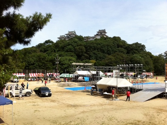 まずは朝、会場設置の為メインステージのある砂の丸演舞場に。