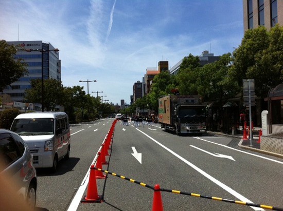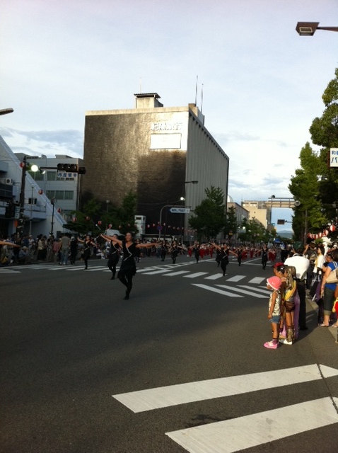 演舞してる場所のすぐ後ろには車が走っています(笑)