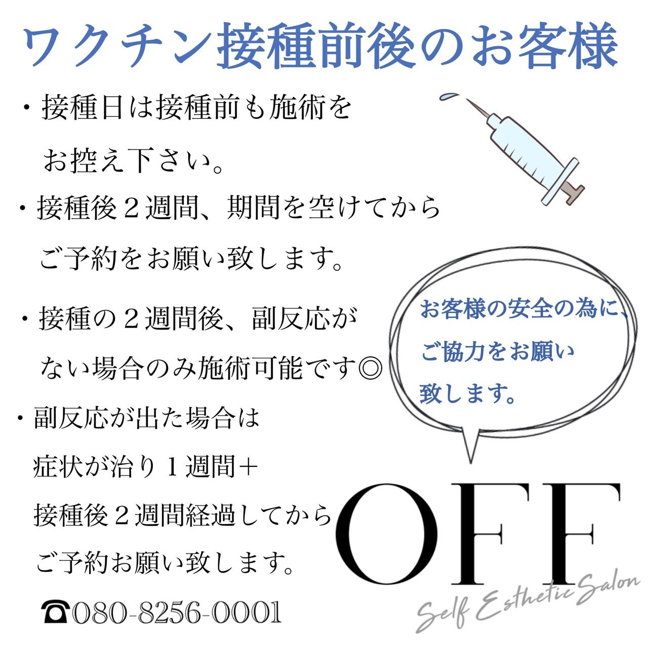 ご予約に関する質問やお問い合わせは080-8256-0001へおかけください🌟