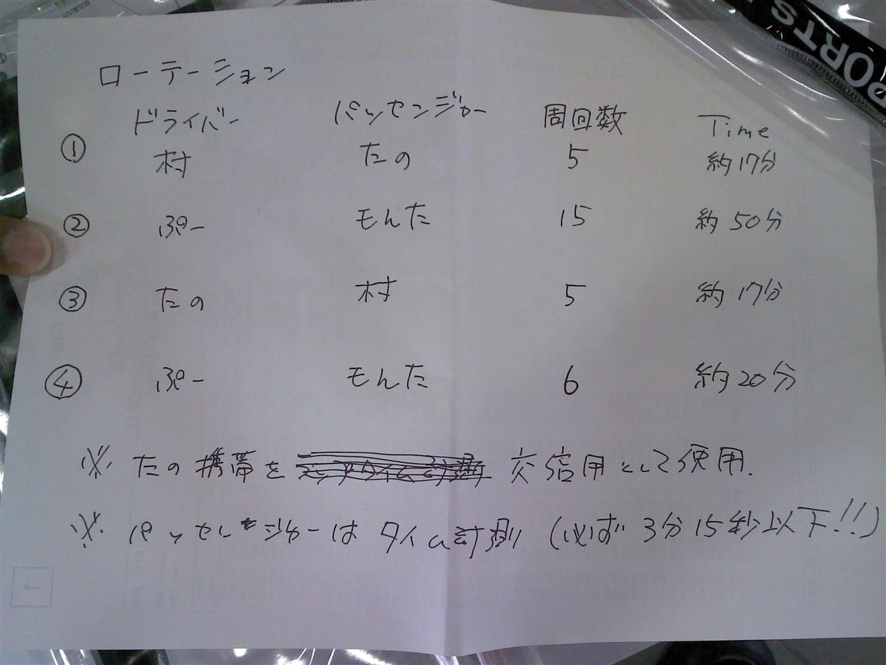 ※ちなみに「ぷー」と書かれているのが私でして、ドライバーは3人いるのに