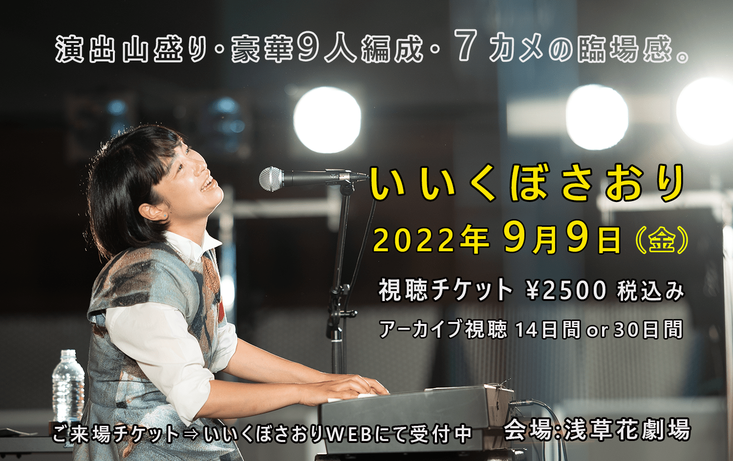 そして、今は配信のアーカイブを楽しんでいます。会場では見ることが出来ない角度から見れたり、いいくぼさんの鍵盤のアップ(私の大好物) や見逃してた表情やバンドメンバーの動き等、配信は配信の楽しさがあって何回も見てます。10/8まで見ることができます。