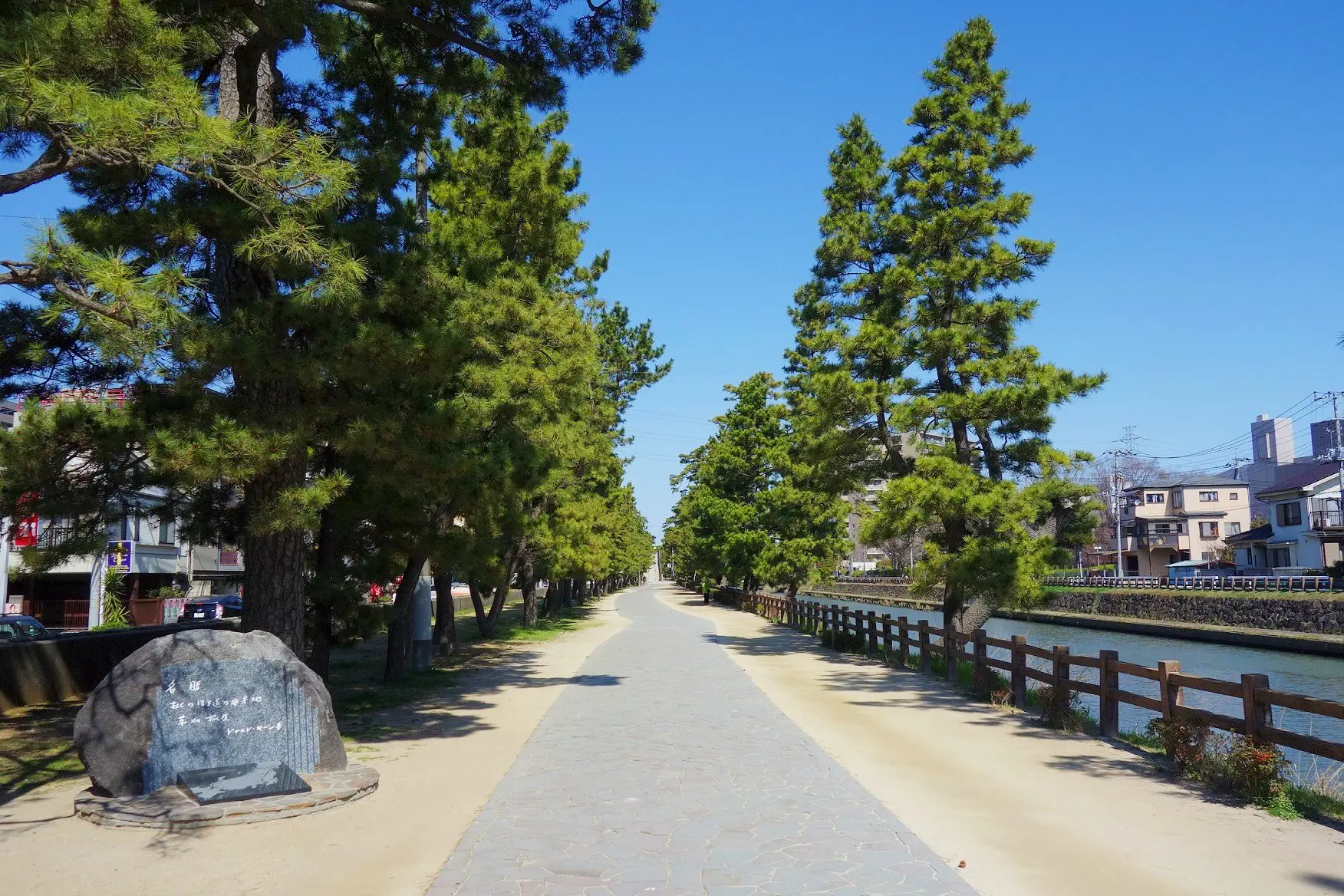 橋の向こうに草加松原が見えてきました。保全に努めて国の名勝となりました✨