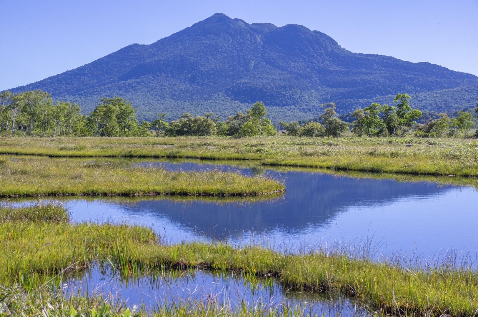 水面に燧ヶ岳が逆さまに映る池塘です。