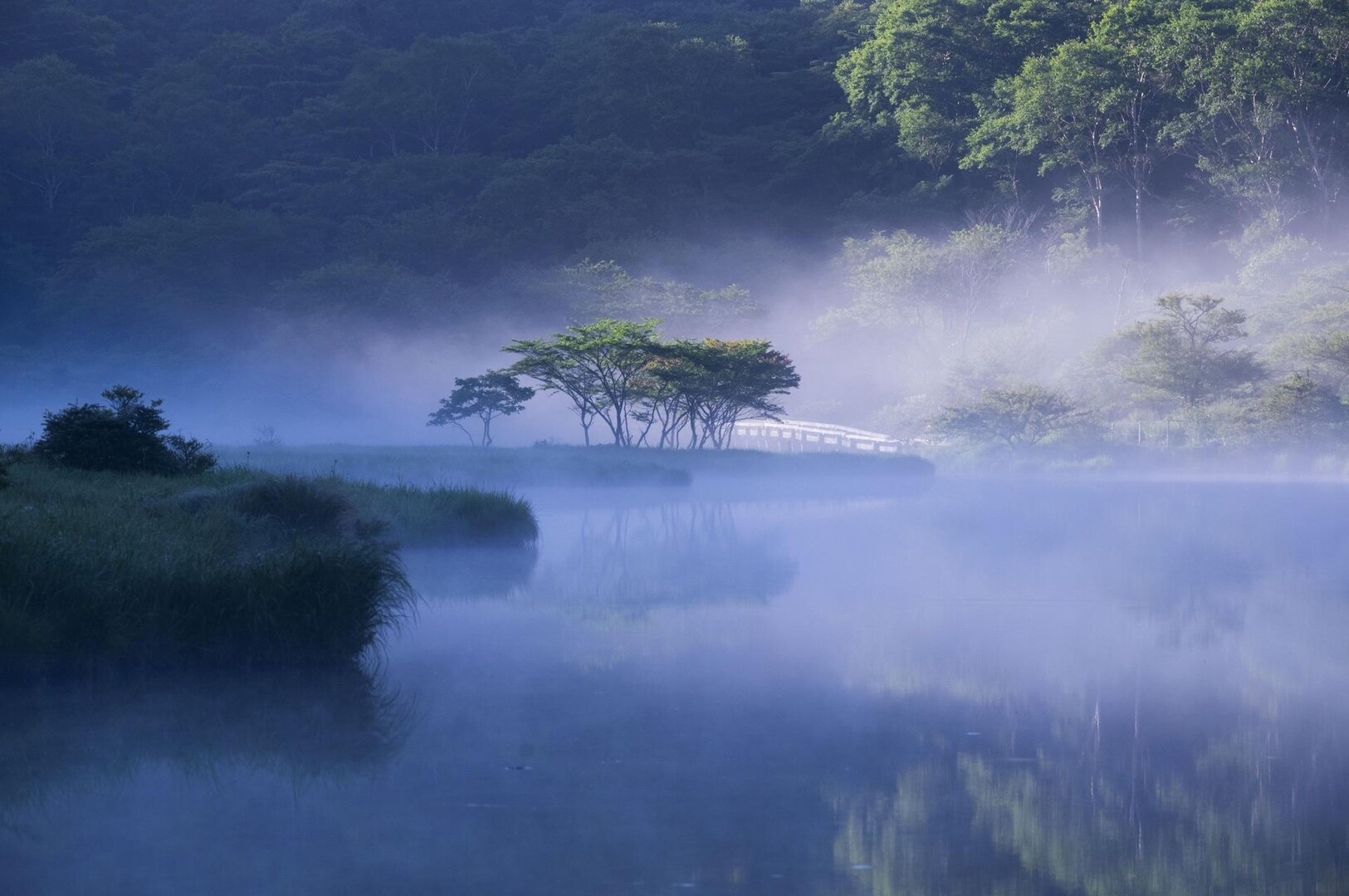 後ろ髪を引かれつつ、覚満淵の気嵐を撮る。